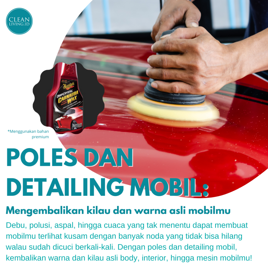 6. Poles dan detailing mobil (mengembalikan kilau dan warna asli mobilmu dari eksterior, interior, hingga dapur mesin)