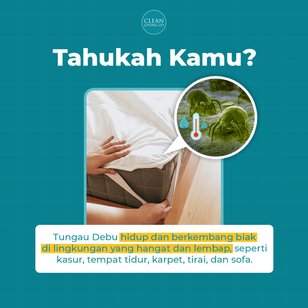 Yuk, coba perhatikan kembali kebersihan lingkungan rumah kamu. Jangan sampai, si tungau debu berkembang biak di sana ya!